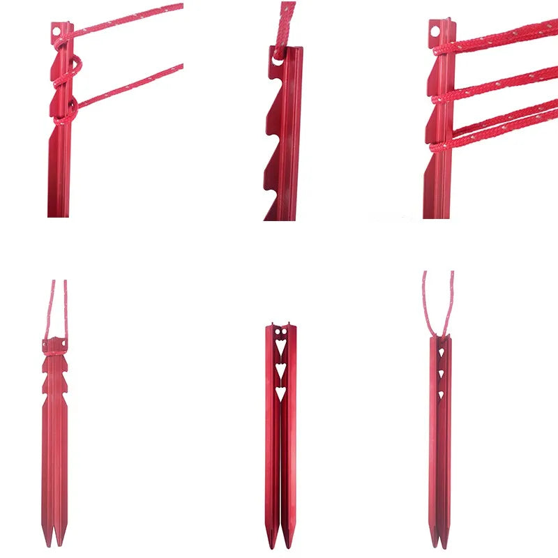 • 🔗 Smart Multi-Directional Design: Featuring a clever three-hole built-in hook and an additional round hole, this design allows for versatile and secure rope attachment from multiple angles. This ensures your guy lines stay put, even in shifting winds.