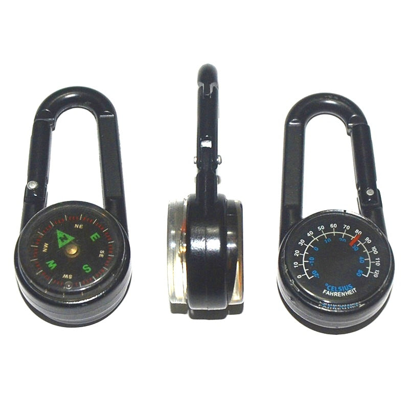 3-in-1 Convenience: It's the ultimate compact companion. This single unit features a secure dual-gate carabiner, a handy liquid-filled compass for quick directional checks, and an easy-to-read thermometer to check the ambient temperature.