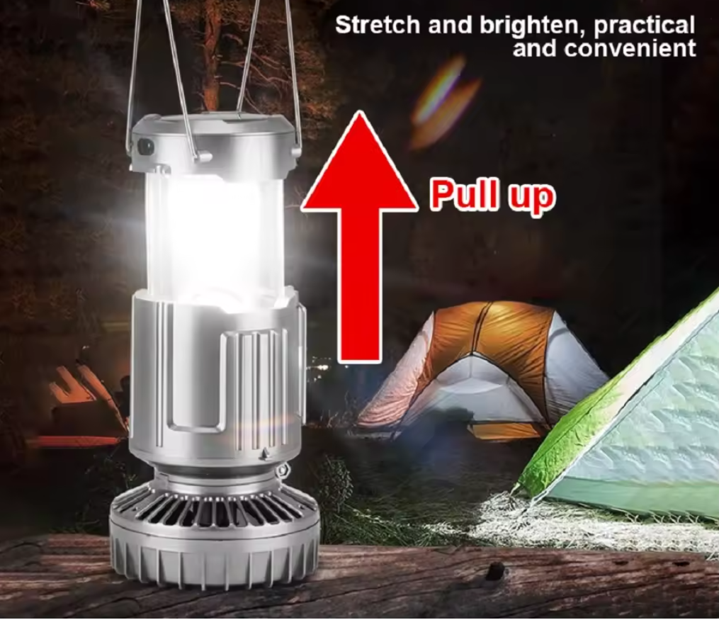 2-in-1 High-Velocity Camping Fan with LED Spotlight