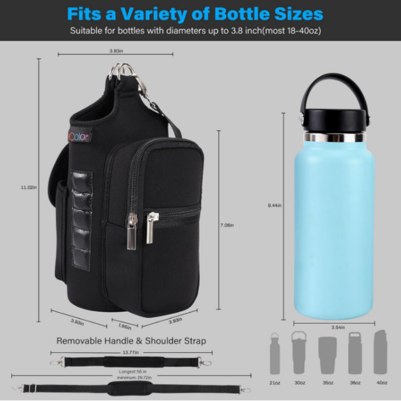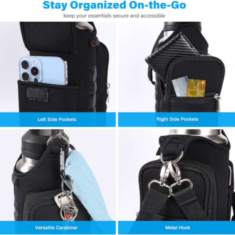 **✅ Your Mobile Storage Caddy: This is more than just a bottle sleeve. It features a spacious main compartment for your bottle, a secure zippered pocket for keys and cards, an easy-access mesh pouch for your phone, and even a dedicated hook for your gym or workshop towel.